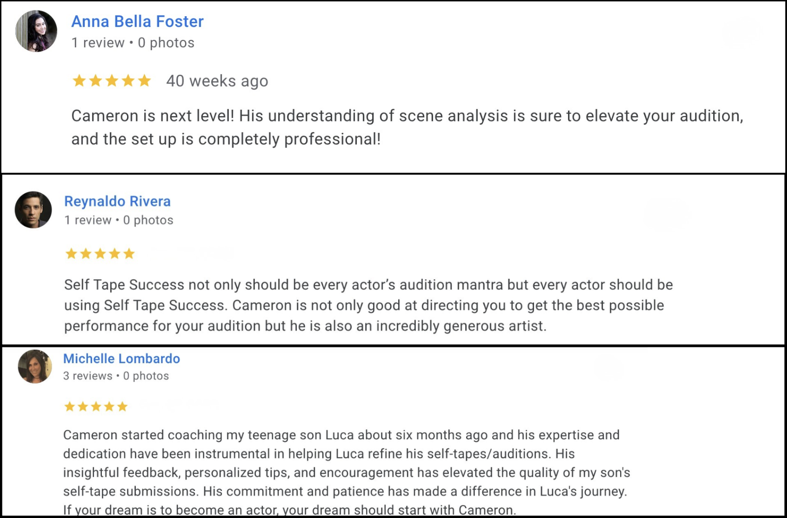 By the end of the process, students leave with well-prepared material that can support their actor profiles, auditions, and potential submissions to agents or managers.